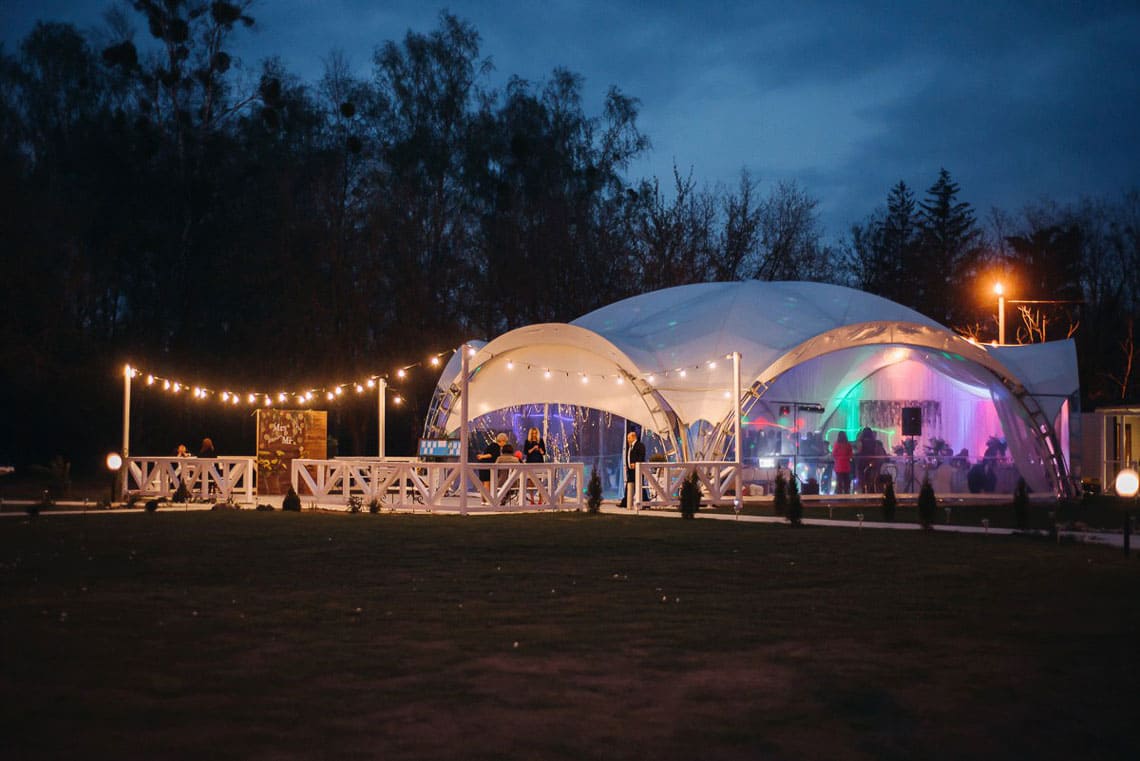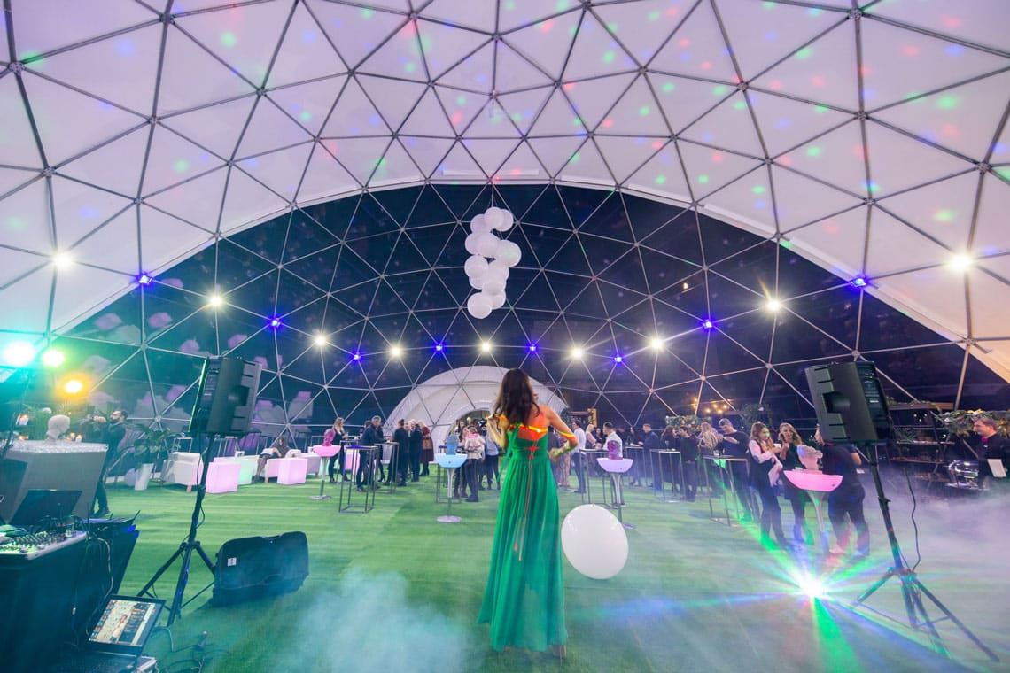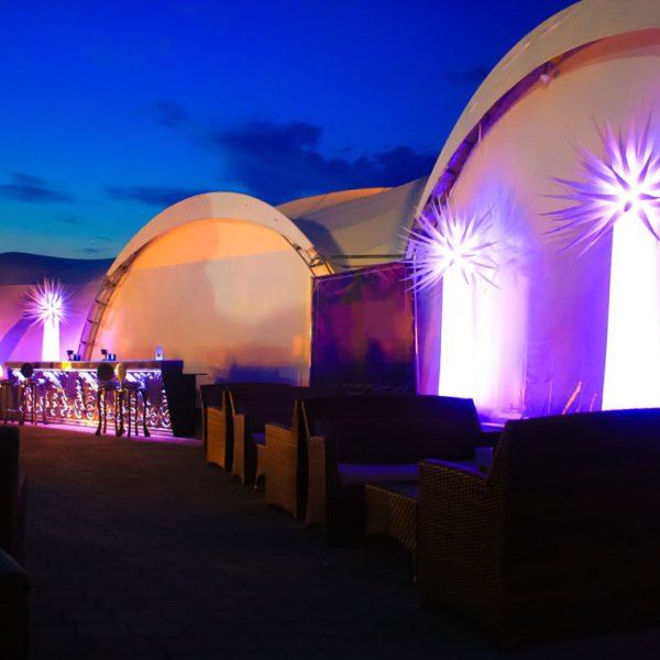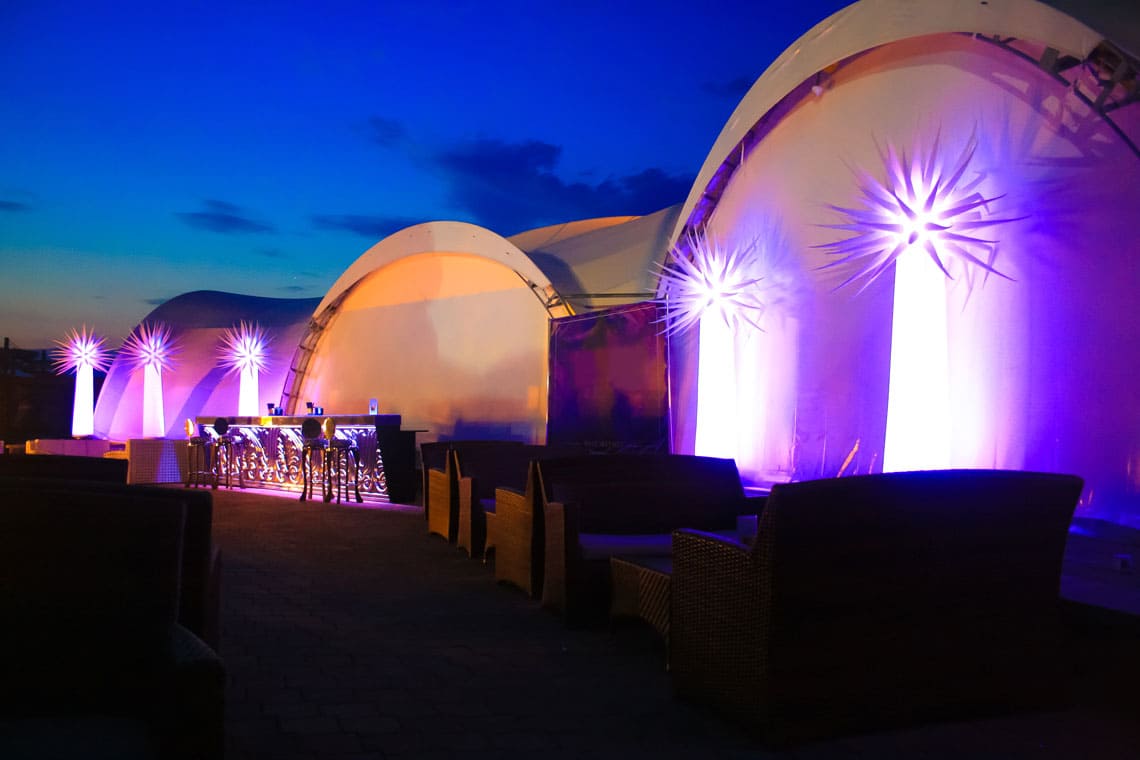 Professionell installierte Außenbeleuchtung verleiht Ihrer Veranstaltung ein unverwechselbares Flair. So kann beispielsweise eine farbige Ausleuchtung der Kuppel während einer Hochzeit nicht nur eine romantische Kulisse schaffen, sondern auch eindrucksvolle Fotos ermöglichen. Ein Ausstellungspavillon in den Lichtfarben Ihrer Marke wiederum zieht gezielt die Aufmerksamkeit der Besucher auf sich – ein effektives Mittel zur Markeninszenierung.